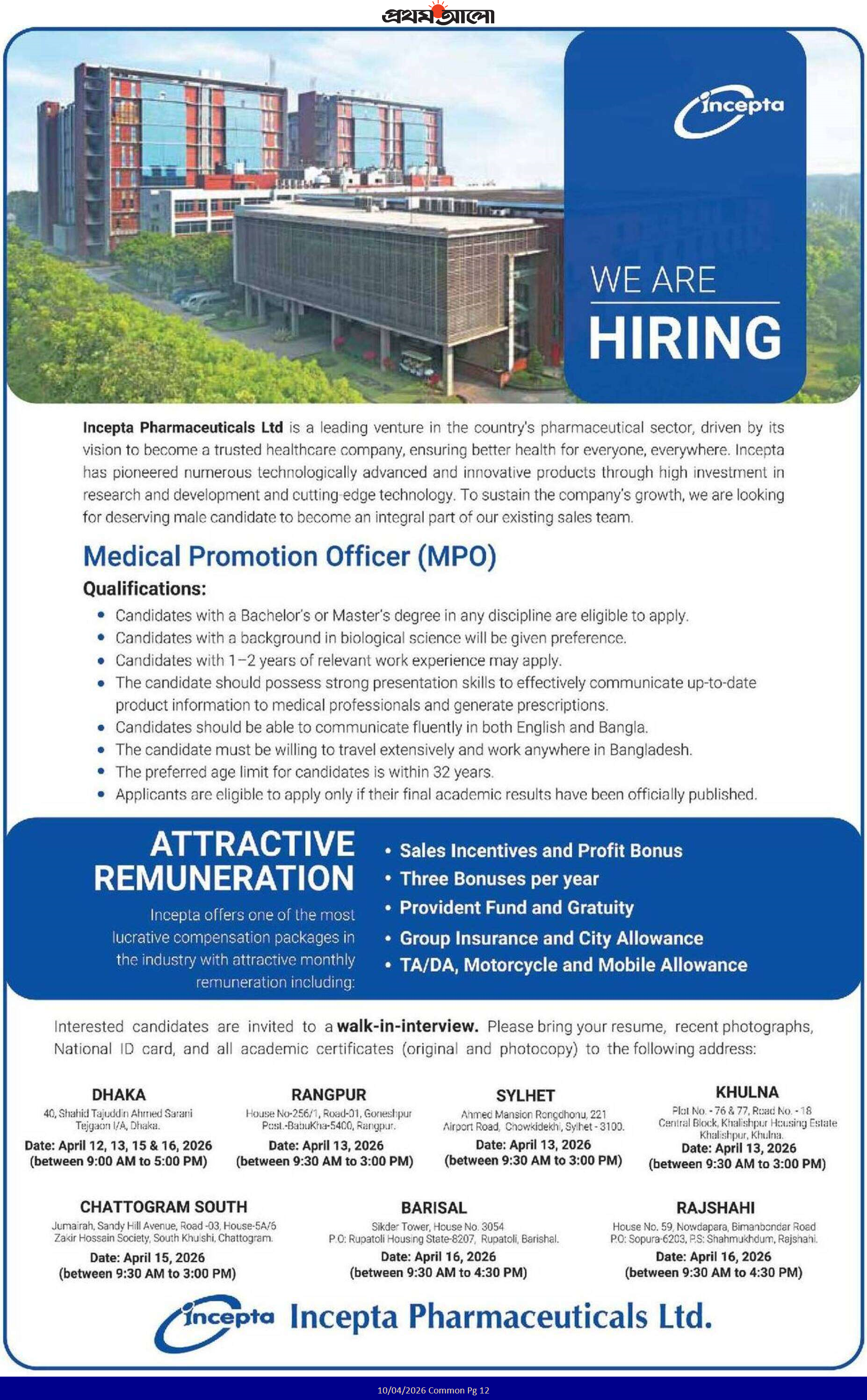 Incepta Pharmaceuticals offers people exciting career opportunities in the port sector. Incepta Pharmaceuticals thinks that young and energetic people are the key to success in this sector that creates brightness in our country. Otherwise, Incepta Pharmaceuticals helps the social economy. If you want to apply for this job, you should submit your application quickly. Incepta Pharmaceuticals Job Circular 2026 original job circular was converted to an image file so that everyone can read it easily or download this job circular. Incepta Pharmaceuticals Job Circular 2026 has been given below.